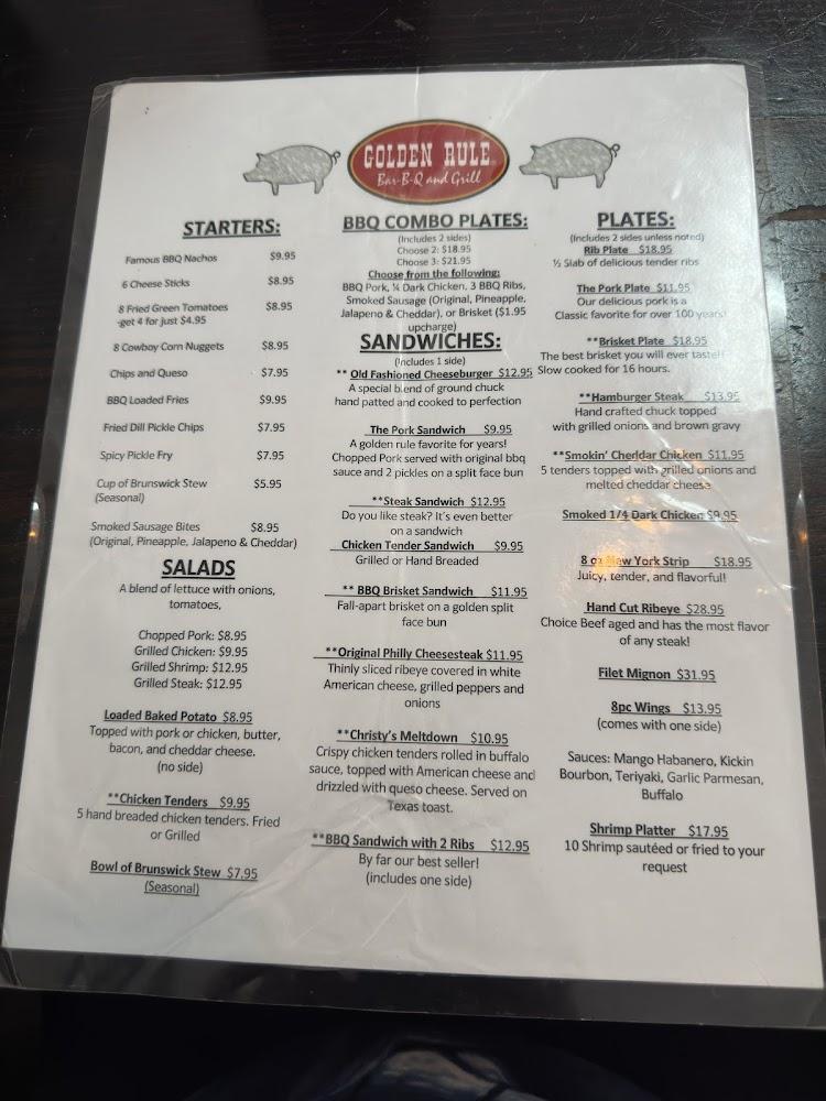 Golden Rule BBQ & Grill features a well-rounded menu showcasing traditional Southern BBQ. Highlights include Famous BBQ Nachos, tender ribs, and flavorful brisket. Each dish balances comfort and quality. Diners can choose from combo plates, sandwiches, and hearty sides. Popular offerings like Mac and Cheese complement the meals nicely.