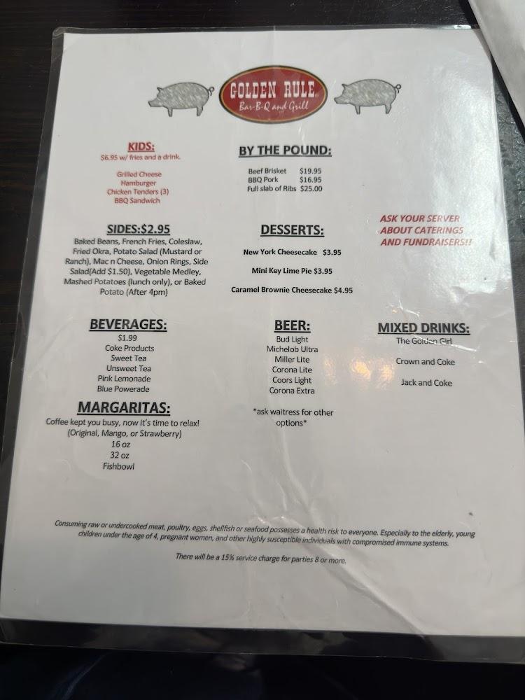 Discover the taste of authentic Southern cuisine at Golden Rule BBQ & Grill in Andalusia. Located at 600 Westgate Plaza, our family-friendly restaurant serves up mouthwatering barbecue, grilled specialties, and a variety of delicious options catering to vegetarians. Enjoy a relaxed dining experience with our accessible amenities, including a drive-thru, takeout, and delivery. Whether you're stopping by for lunch, dinner, or a quick bite, our quick service and extensive beverage selection, including beers and cocktails, will enhance your meal. Join us for a delightful culinary journey in a welcoming atmosphere that celebrates local flavors and traditions!